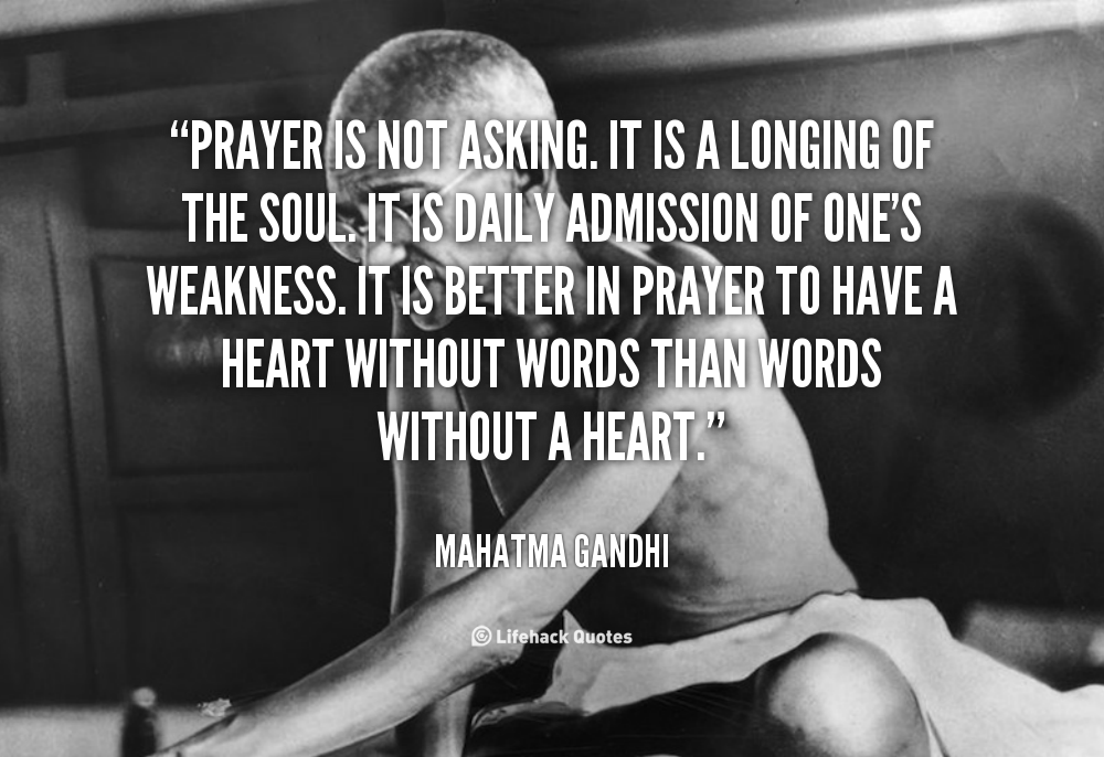 IMG_1176 Ah, but Gandhi was hardly a Christian, some might point out. His ideas of prayer and our ideas should be fundamentally very different. Aren’t we praying to entirely different Beings? I’m reminded of another Gandhi quote: